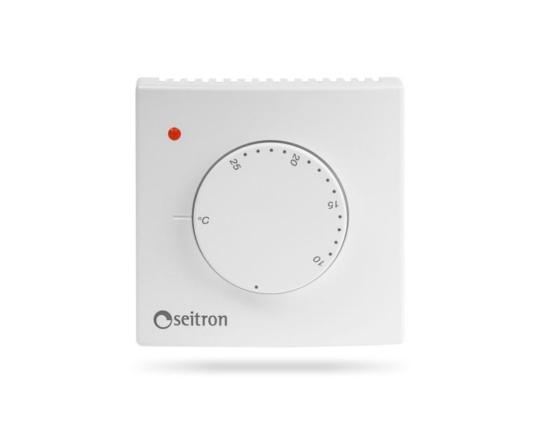 Probabilmente il più semplice dei termostati in termini di costruzione. Il dispositivo è dotato di un sensore ad espansione che permette di accendere o spegnere il riscaldamento. È la soluzione ideale se si vuole evitare il consumo energetico per l’alimentazione del dispositivo, o se non si ha la possibilità di avere l’alimentazione e non si vuole ricorrere alle batterie. La temperatura è impostata tramite la rotellina graduata che dispone di un blocco meccanico per la limitazione. Con spia luminosa che si accende quando l'impanto di riscaldamento è in funzione.